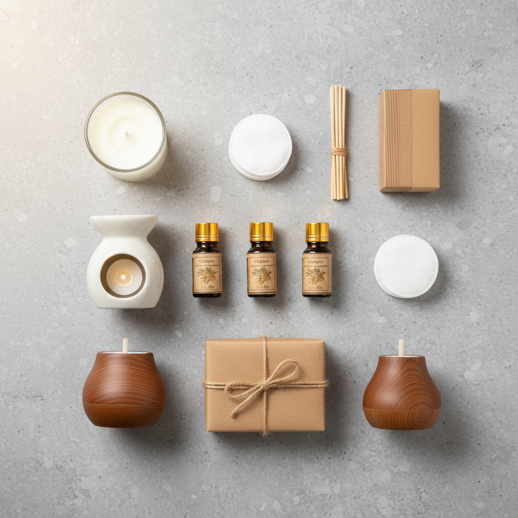 The “Natural Serenity Essential Oil” gift set draws inspiration from a tranquil spa morning – where soft daylight and gentle mist meet stone, dried leaves, and warm wood, blending purity with calm elegance for wellness-focused, restorative gifting