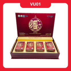 – Chiết xuất táo đỏ Hàn Quốc, chiết xuất nấm linh chi, chiết xuất đương quy Hàn Quốc, chiết xuất cam thảo Hàn Quốc, chiết xuất xuyên khung, vỏ cam, chiết xuất hoa mẫu đơn, địa hoàng tươi, chiết xuất vỏ quế, mật ong cô đặc, đường syro, đường hoa quả, hương liệu nhân sâm, chất tạo màu caramel, Dextrin một dạng thủy phân của tinh bột.